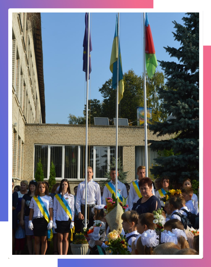 “На нашій школі панує тепла та дружня атмосфера. Ми прагнемо досягнень у всіх сферах: академічні успіхи, спорт, мистецтво. Вчителі та учні підтримують один одного, створюючи сприятливий контекст для зростання і розвитку. Беремо участь у змаганнях, конкурсах, олімпіадах, прагнучи підняти прапор перемоги. Крім навчання, розкриваємо свої таланти на шкільних виставках та концертах. Наша школа – місце, де кожен може знайти себе, здобути знання та стати кращою версією себе. Ми – сплочений колектив, де кожен відчувається важливою ланкою цілісного навчального середовища. Наші випускники з розпростертими крилами відлітають у світ, зберігаючи знання, друзів та незабутні спогади про неповторні роки у нашій школі.”